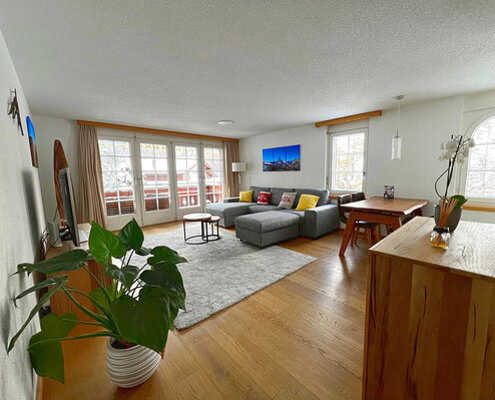 Das Haus Vira befindet sich auf einer Anhöhe im südlichen Teil von Zermatt, im ruhigen Ortsteil Winkelmatten/Obere Tuftra. Von unseren stilvollen Wohnungen eröffnet sich einer der eindrucksvollsten Ausblicke auf das majestätische Matterhorn in seiner gesamten Grösse. Eingebettet in einen liebevoll gestalteten Garten, ist es der perfekte Rückzugsort für Naturliebhaber und Sportbegeisterte. Die Lage ist ideal für Wanderer, da zahlreiche Trails in Richtung Schwarzsee, Findeln und Gornergrat unmittelbar erreichbar sind, während Wintersportler die Vorzüge eines direkten Ski-in/Ski-out Zugangs genießen können. Die nächste Bushaltestelle liegt lediglich etwa 200 Meter entfernt. In Winkelmatten finden Gäste zudem hervorragende gastronomische Angebote in vier lokalen Restaurants. Dank des ruhigen Ambientes am Rande des Dorfes ist Haus Vira eine ausgezeichnete Wahl für Sommer- und Wintersportler sowie für all jene, die sich abseits der Hektik des Dorfzentrums entspannen möchten. Alle Apartments mit traumhaftem Blick auf das Matterhorn wurden kürzlich stilvoll renoviert und bieten ein hohes Maß an Komfort. Das Haus verfügt über einen Aufzug sowie kostenlosen WLAN-Zugang, und die Gastgeberfamilie kümmert sich persönlich um das Wohl der Gäste.